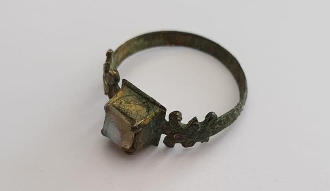 Neben diesem Buntmetallring fanden wir unter der Erde auch Rosenkranzfragemente, die von der Religiosität der frühneuzeiltichen Hohenpoldinger zeugen.